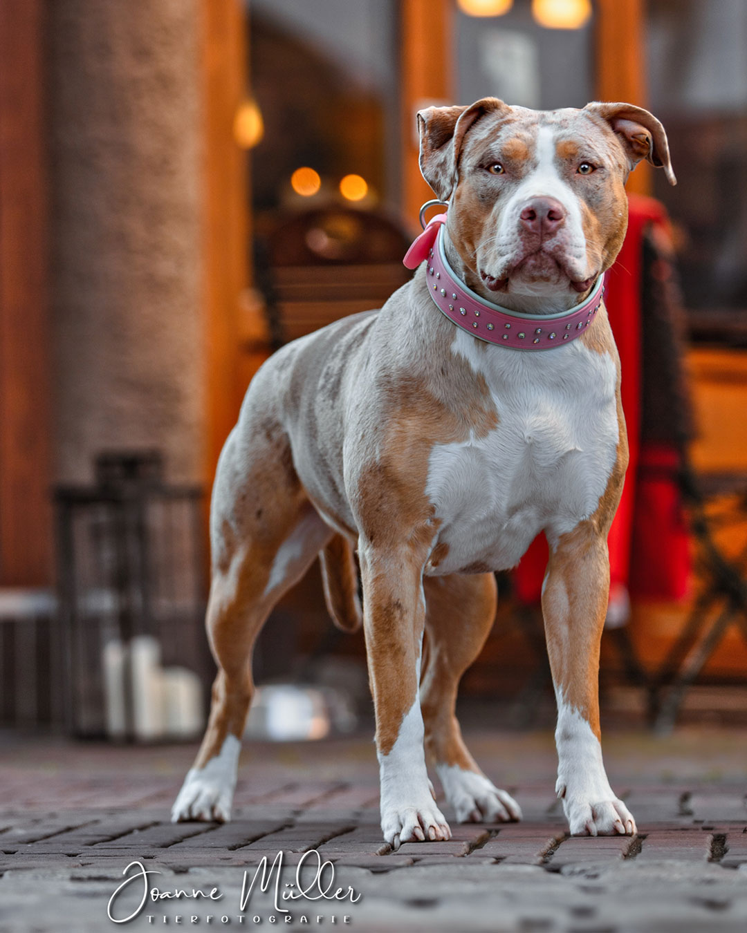 Sie strahlt eine unglaubliche Ausgeglichenheit aus und würde einen gemütlichen Platz auf der Couch jederzeit einem großen Abenteuer vorziehen. Gleichzeitig ist sie sehr gelehrig, aufmerksam und absolut rudelkompatibel.